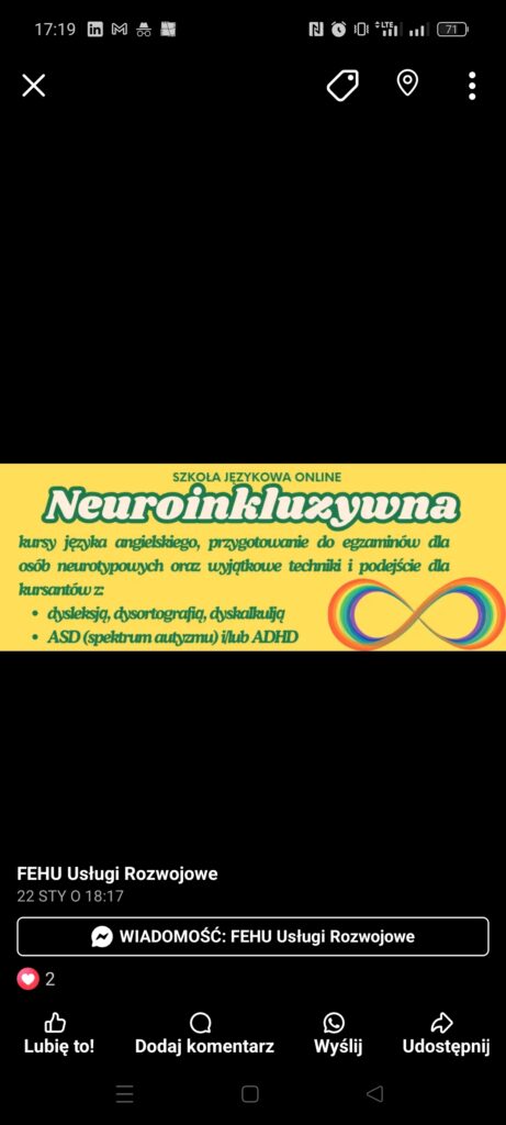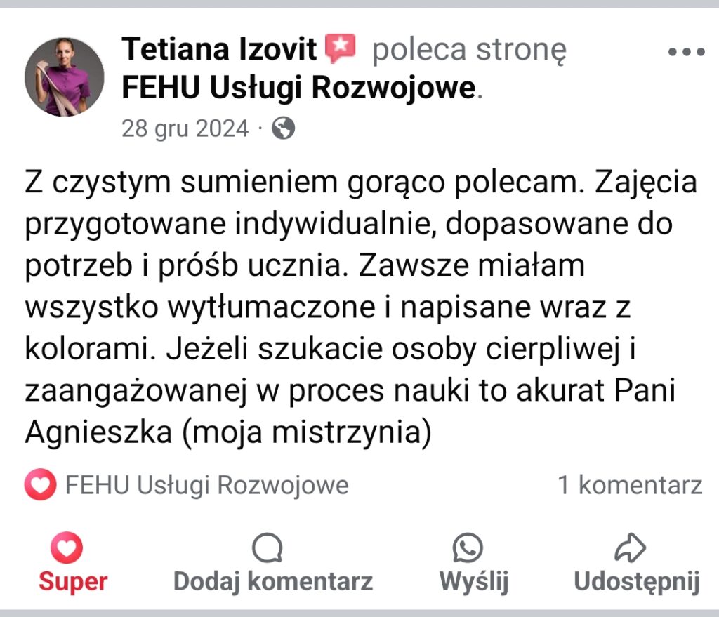 18 lat doświadczenia w nauczaniu języka angielskiego jako języka obcego (zajęcia prowadzone wyłącznie przez wykwalifikowanych pedagogicznie i metodycznie nauczycieli, a nie lektorów z byle certyfikatem) oraz tłumaczeniu aplikacji, stron internetowych, reklam, tekstów literackich.